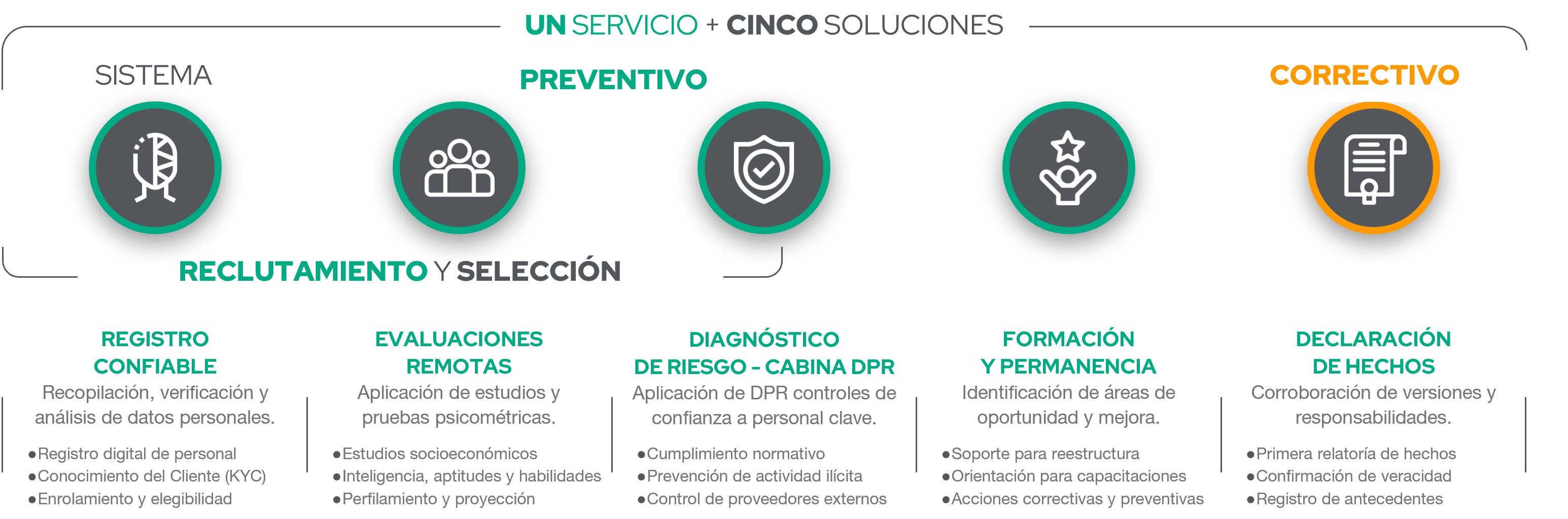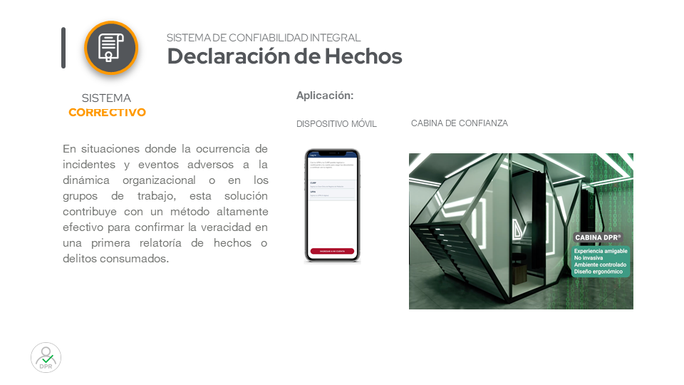 "Usar las 5 soluciones que ofrece el Sistema de Confianza Integral DPR incluyendo la cabina de confianza DPR ha venido a revolucionar los procesos de reclutamiento y de pruebas de evaluación y control de confianza."